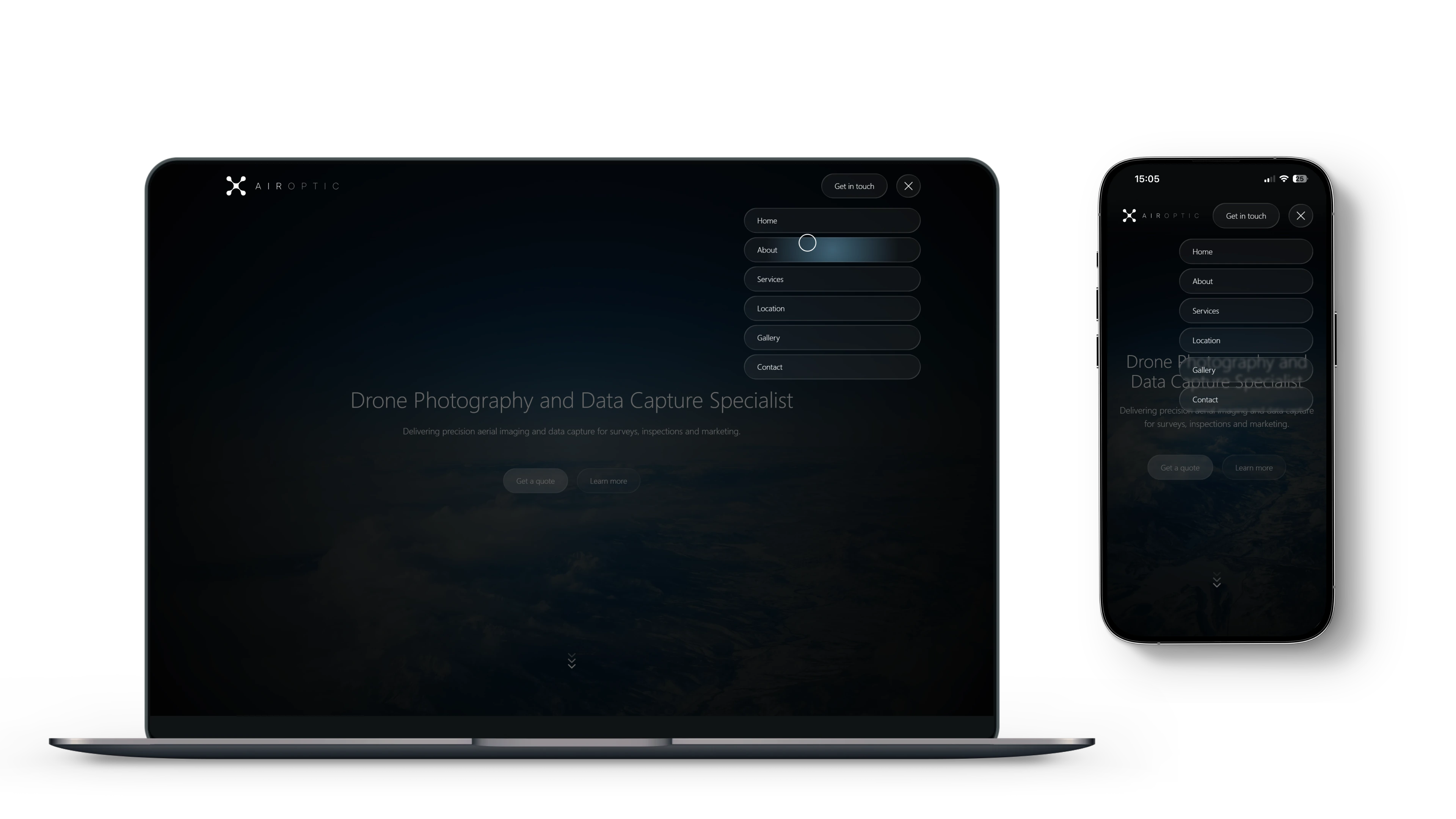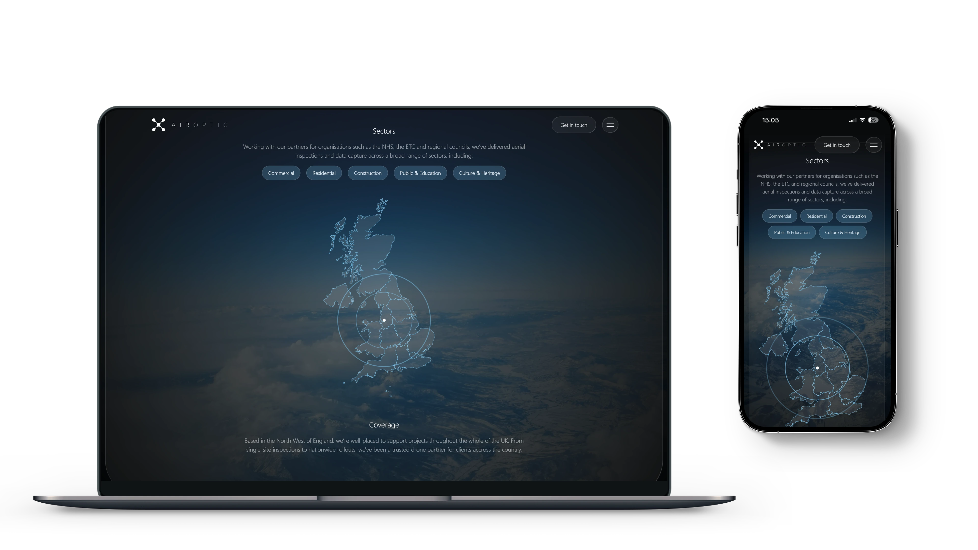 Airoptic is a UK-based drone technology company specialising in aerial imaging and data capture. They partner with clients across sectors such as surveying, construction, and marketing to deliver precise aerial visuals and insights to support a variety of projects. A redesign of their website was required with a focus on elevating brand perception, clarifying services, connecting with clients and creating a digital experience that feels as advanced and reliable as their technology.